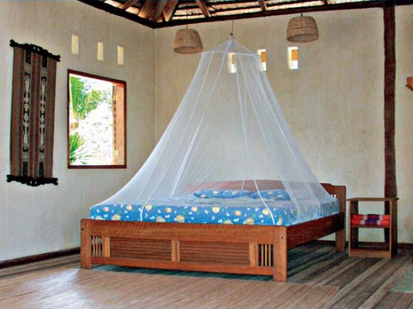 15 schlichte Bungalows liegen in einem riesengroßen tropischen Garten malerisch am Hang verteilt. Sie sind in drei Kategorien aufgeteilt. Die 9 Relax Holzbungalows auf Stelzen und die 6 Comfort und die Deluxe aus Stein, sind alle mit europäischer Toilette, Waschbecken und Dusche, Doppel- oder Einzelbett mit Moskitonetz und Ventilator. die Relax jedoch ohne warmes Wasser und Aircondition. Das Wasser wird jedoch in großen Behältern, die in der Sonne stehen, aufbewahrt, weshalb es nicht kalt ist. Die Steinhäuser verfügen zusätzlich über Arbeitstische für Fotografen sowie Deckenventilatoren. Jedes Häuschen hat eine Terrasse mit Sitzgelegenheit und Hängematte, von der man auf das türkisblaue Meer mit endlosem, weißen Sandstrand blicken kann. Die Bungalows haben 24 Stunden Stromversorgung. Warmwasserduschen gibt es auf dem Strand.